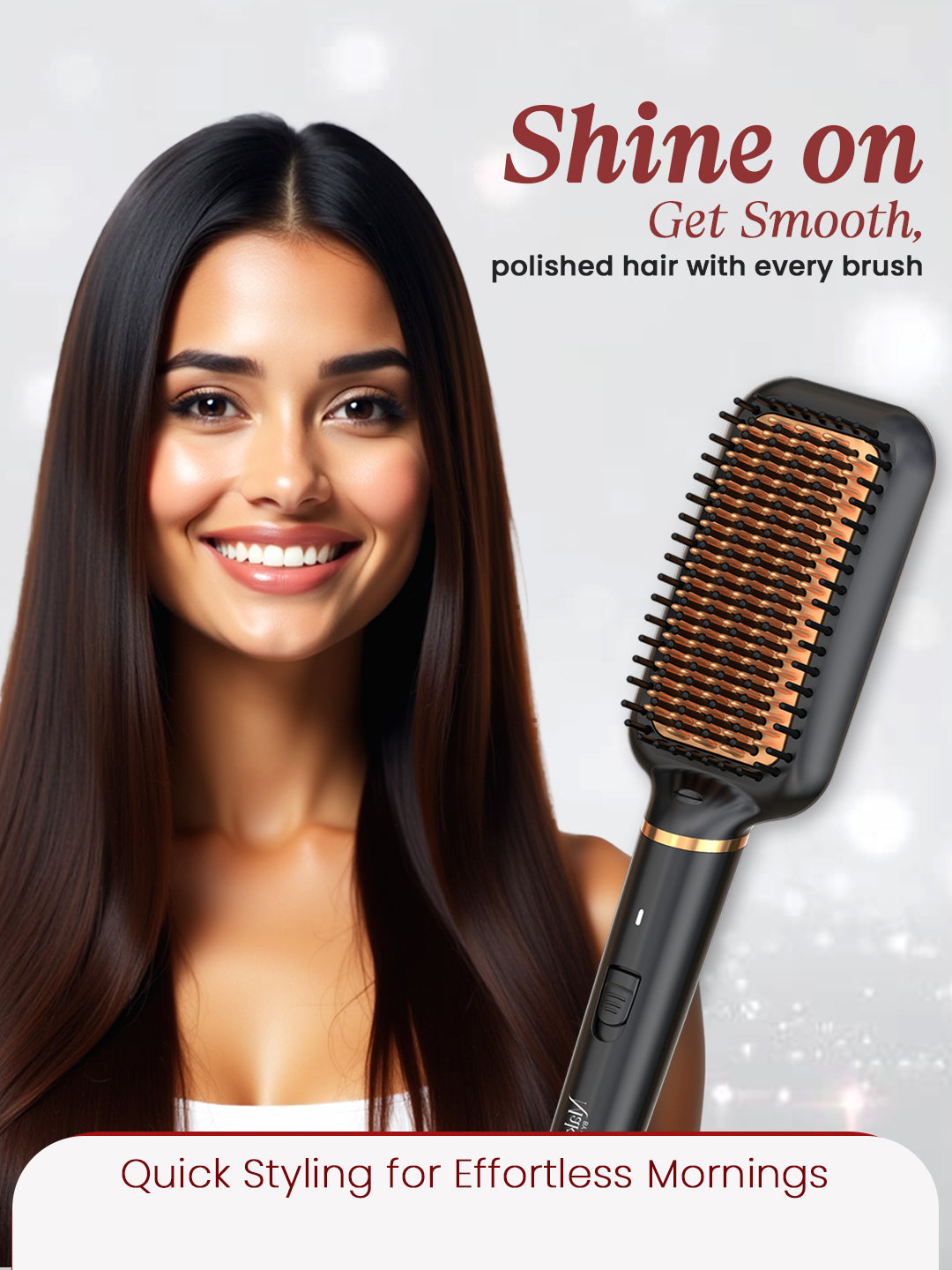 2. Triple Bristle Design with Ceramic Coating Safe & Even Heat Distribution : This straightener brush features ceramic-coated triple bristles, ensuring even heat distribution while minimizing hair damage and preventing burns, making styling safer and more effective.