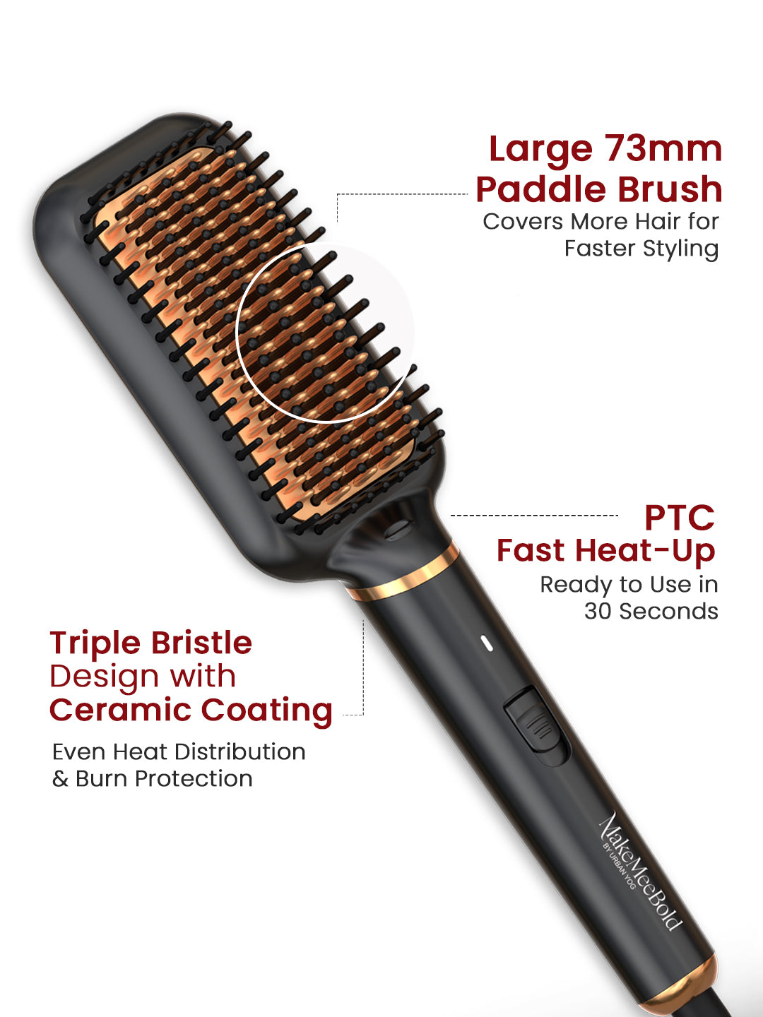1. Large Paddle Brush (73 mm) Covers More Hair for Faster Styling : The hair straightening brush is designed with a wide paddle (73 mm) to style more strands in one pass, cutting down on styling time while ensuring smooth and sleek results.