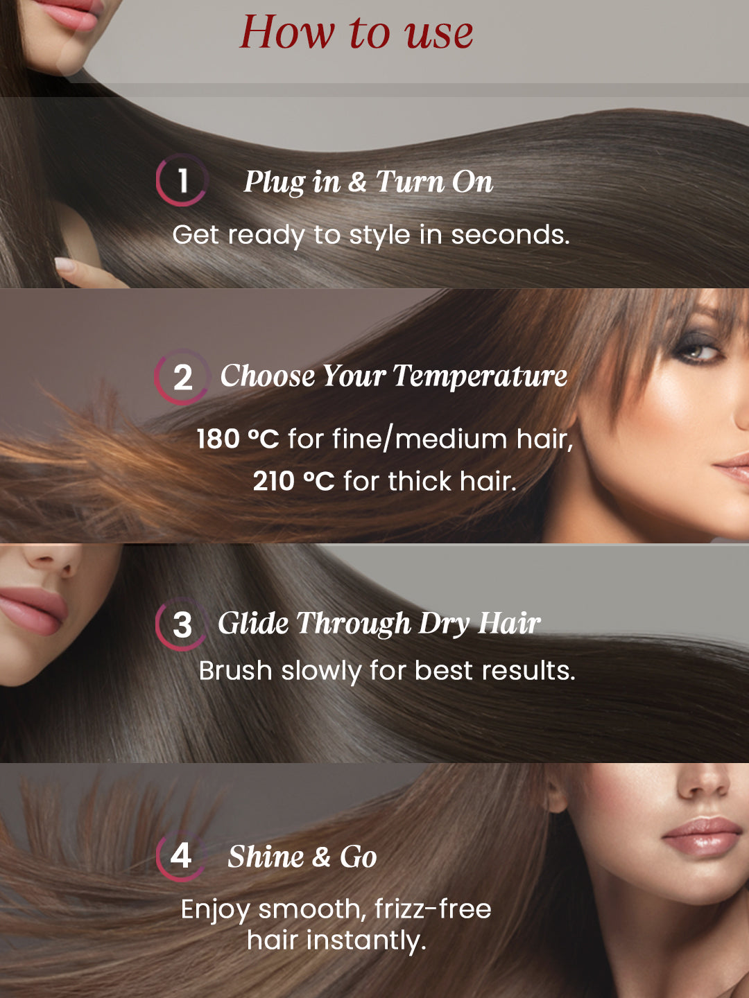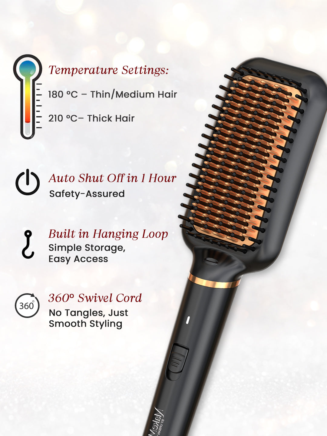 5. 1.8m 360° Swivel Cord – Tangle-Free & Hassle-Free Styling : The hair straightening brush is designed with a tangle-free, 360° swivel cord, offering easy maneuverability so you can style your hair effortlessly from any angle.