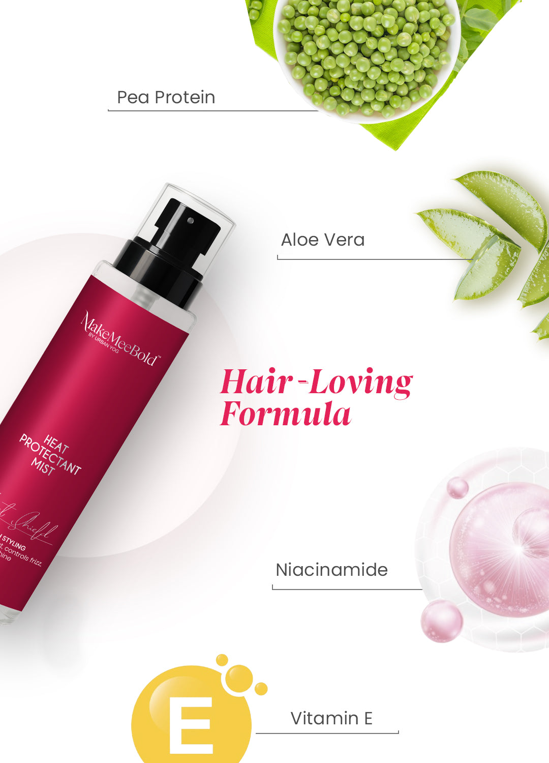 Protect your hair from heat damage with MakeMeeBold Heat Protectant Mist. This 200 ml mist provides professional-level protection against heat styling tools, leaving your hair healthy and shiny. With MakeMeeBold, you can style your hair with confidence, knowing that your locks are safe from the damaging effects of heat.