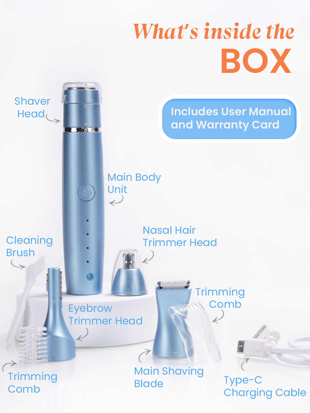 4 Attachments – Main Blade, Shaver, Nose Trimmer, Eyebrow Trimmer