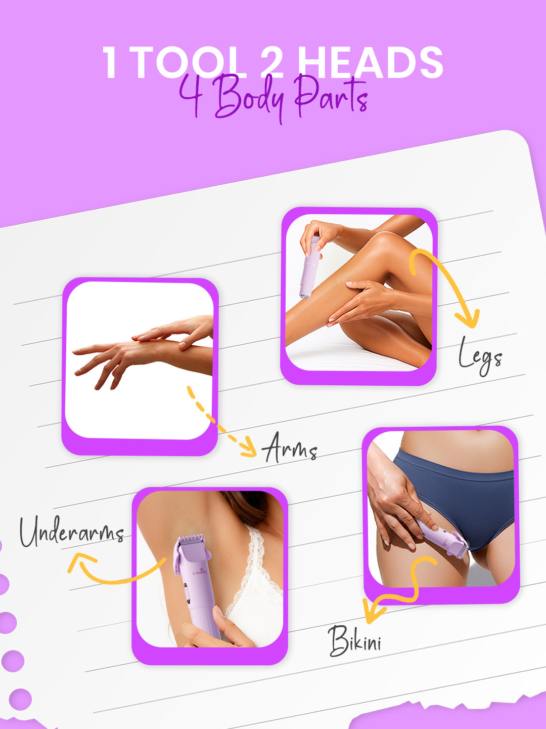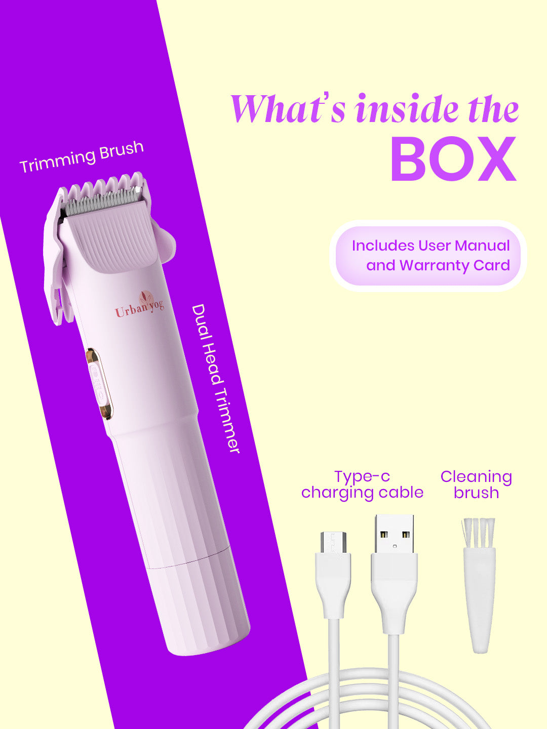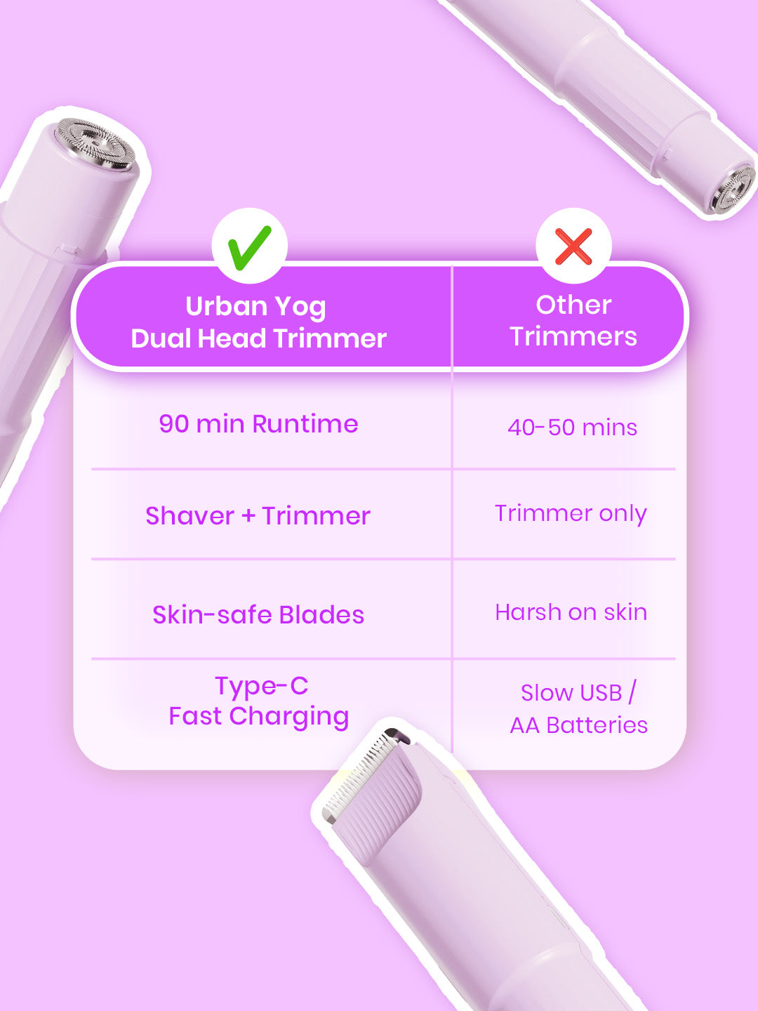 No nicks. No redness. No post-wax irritation. Just smooth, steady grooming with the Urban Yog Dual Head Body & Bikini Trimmer — your easiest, most comfortable alternative to traditional hair removal.