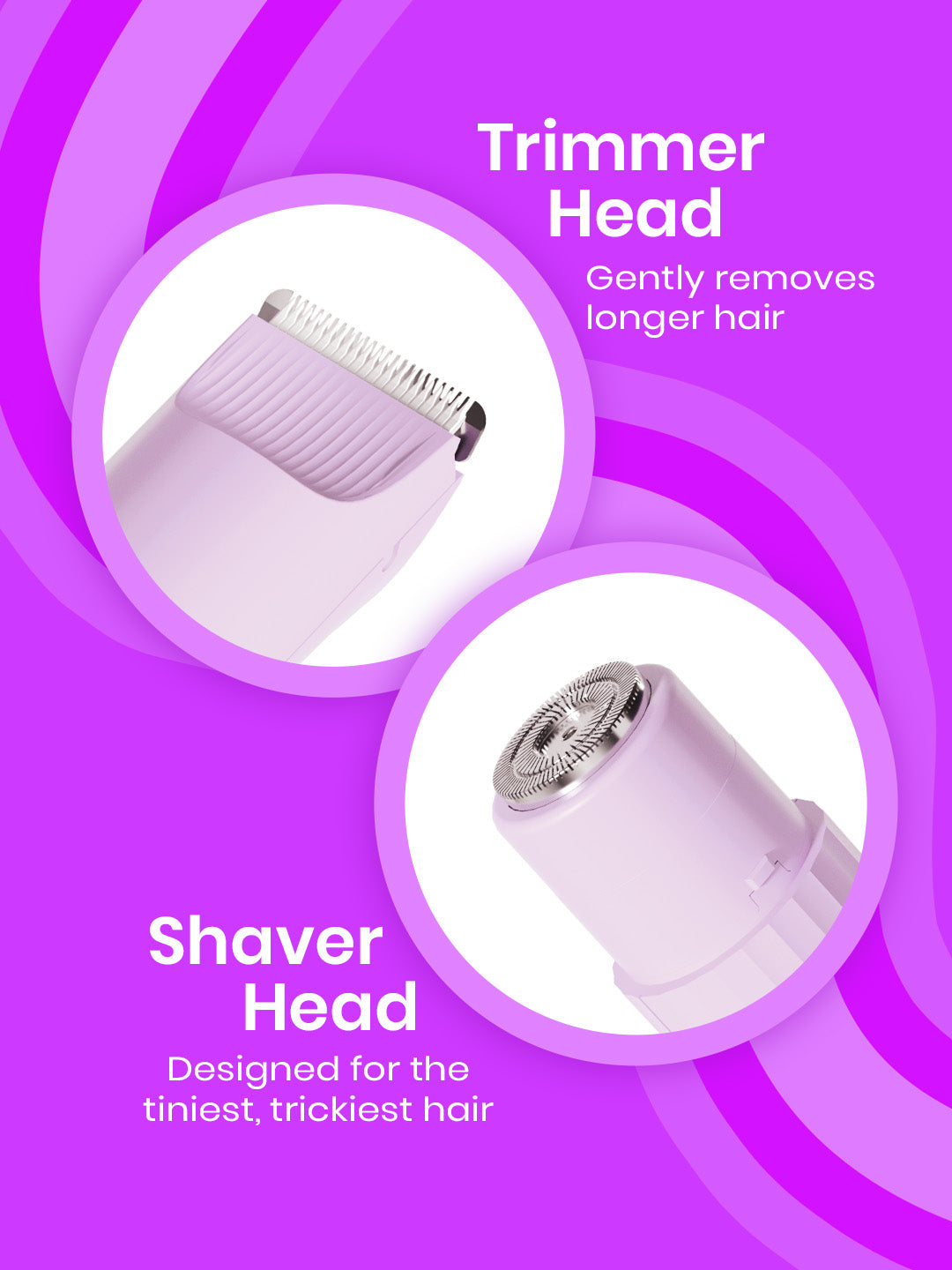And for those stubborn little strands that stay behind after trimming? Switch to the shaver head and go in gentle circular motions to clear them for the smoothest skin ever!