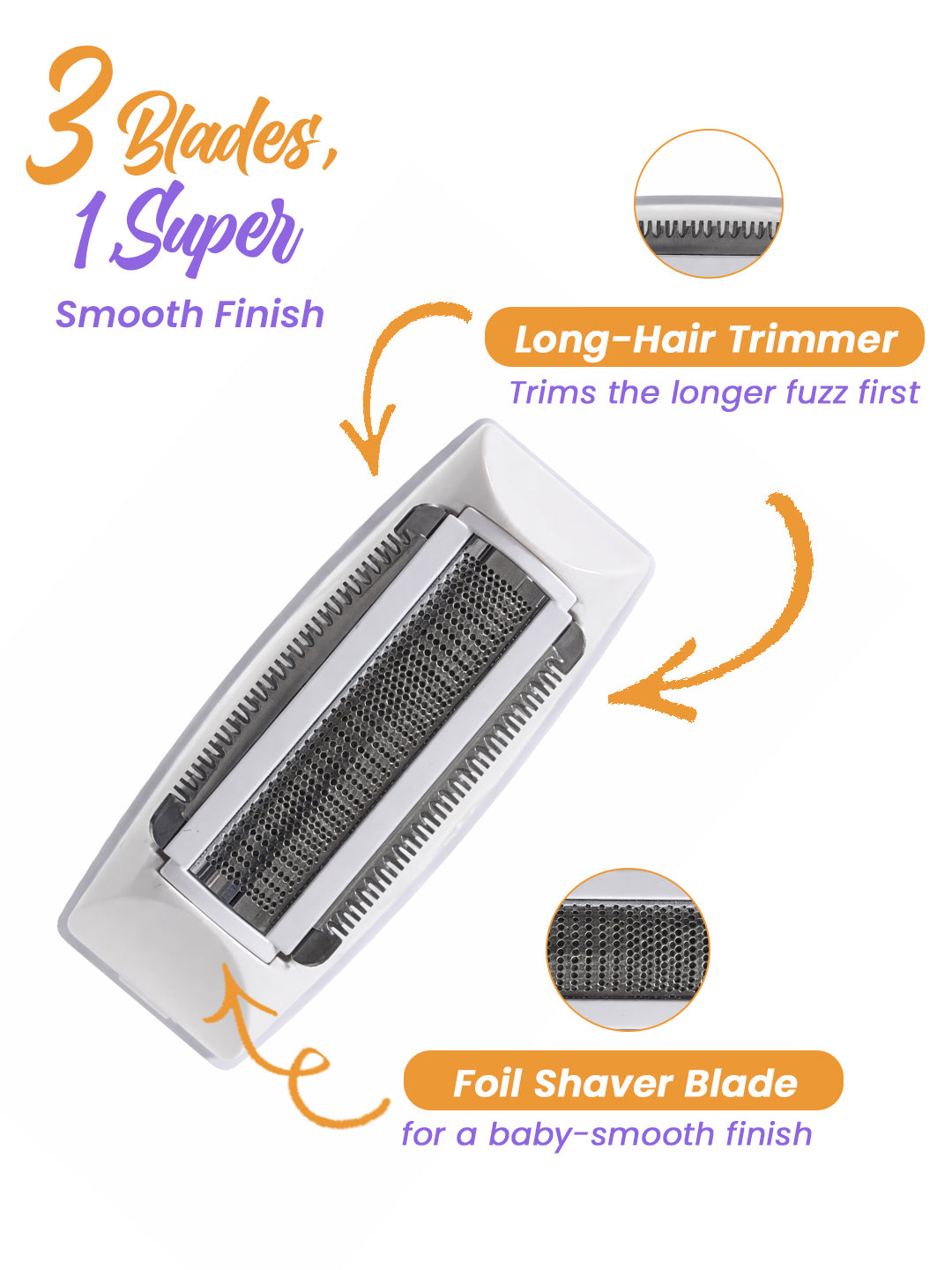 All-in-one Hair Trimmer: This electric shaver for women can be used either as a bikini trimmer or a body trimmer, take your pick! It ensures a smooth, painless hair removal experience with no nicks, cuts or irritation with skin-safe blades.