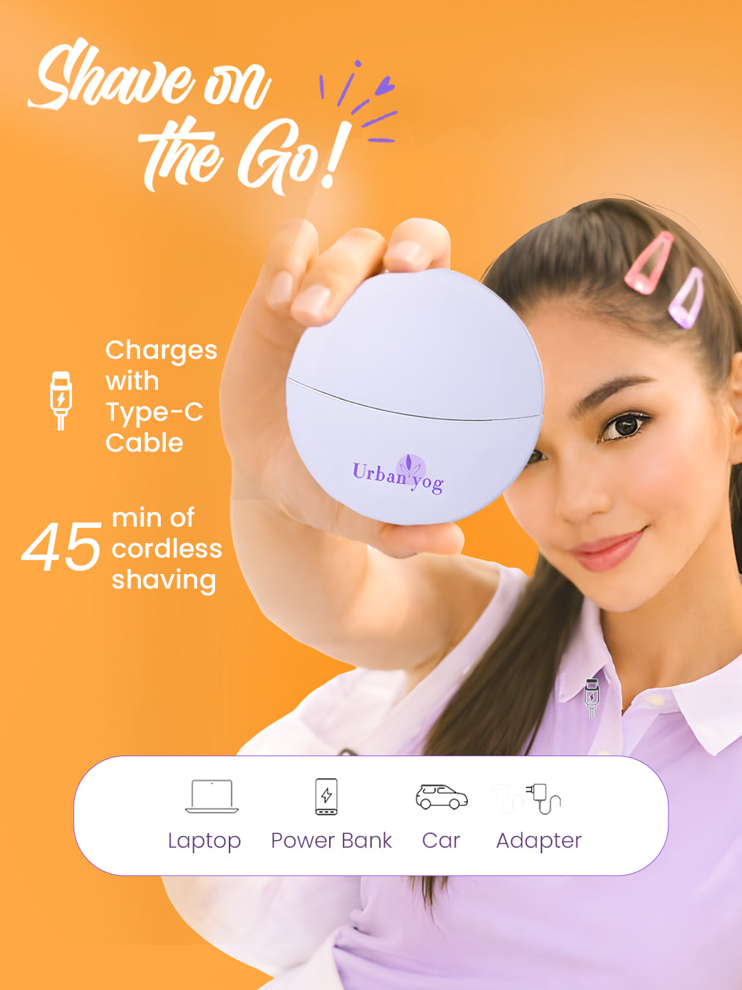 Smooth & Painless Hair Removal: Urban Yog Fuzz Off Mini Body Trimmer for women is the quickest and easiest way for painless hair removal from arms, legs, underarms or bikini line, as compared to traditional waxing or hair removal methods. Fuzz Off always has your back when it comes to body hair removal 😉