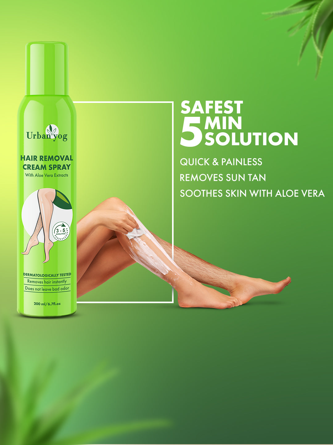 1. Removes hair painlessly : Not all hair removal methods are painful. Use Urban Yog hair removal spray for painless hair removal from your hands, legs or underarms. For a clean skin, you just need to spray it, wait and wipe. As simple as that!