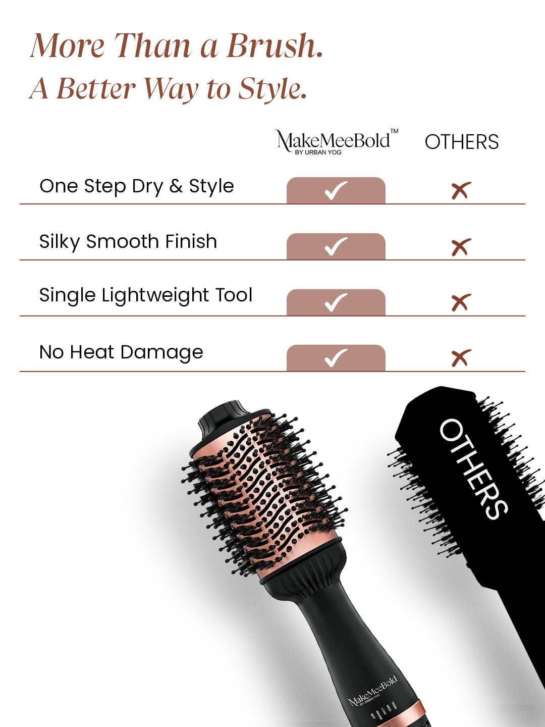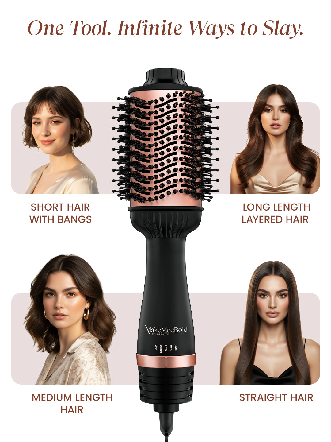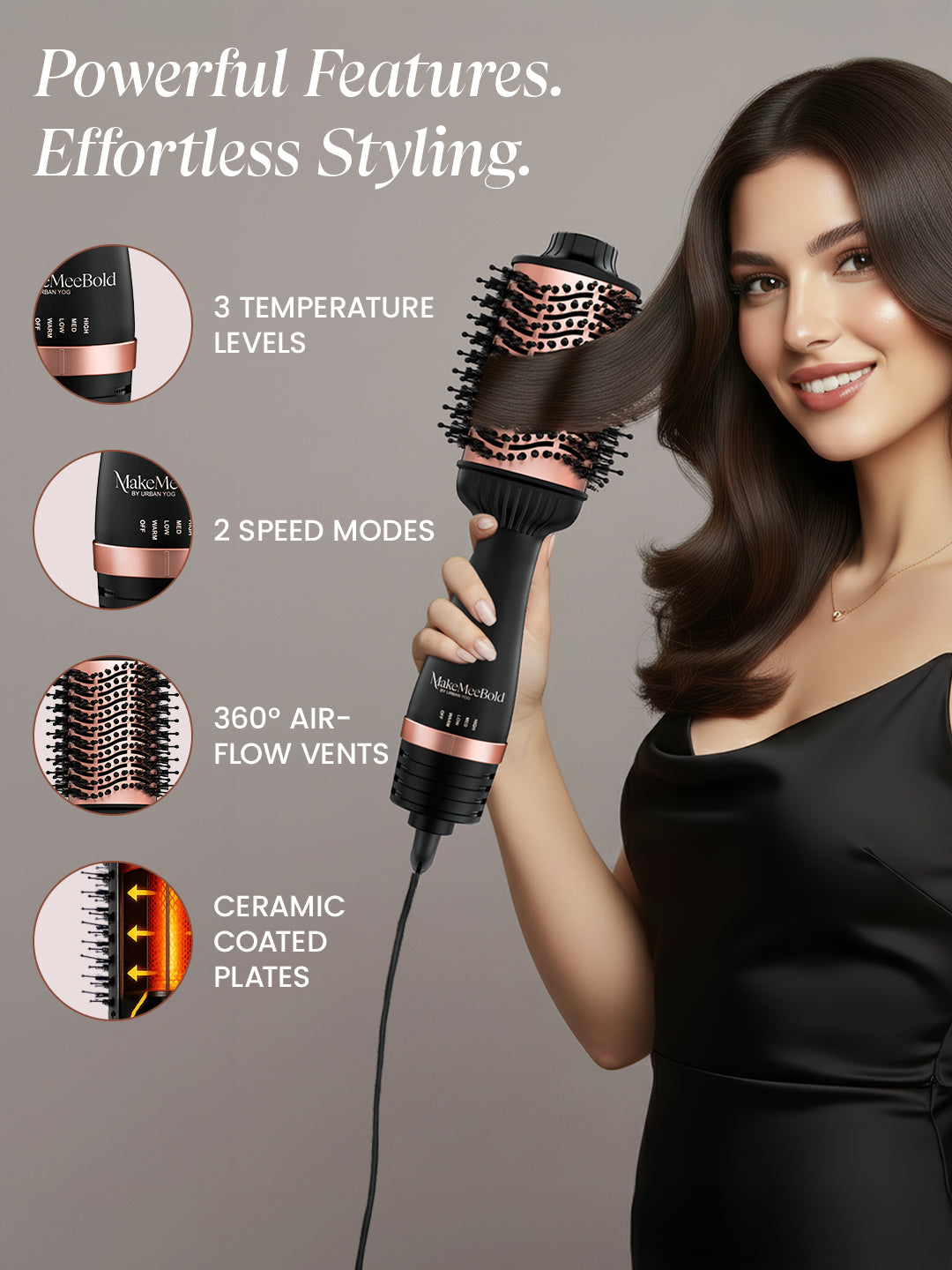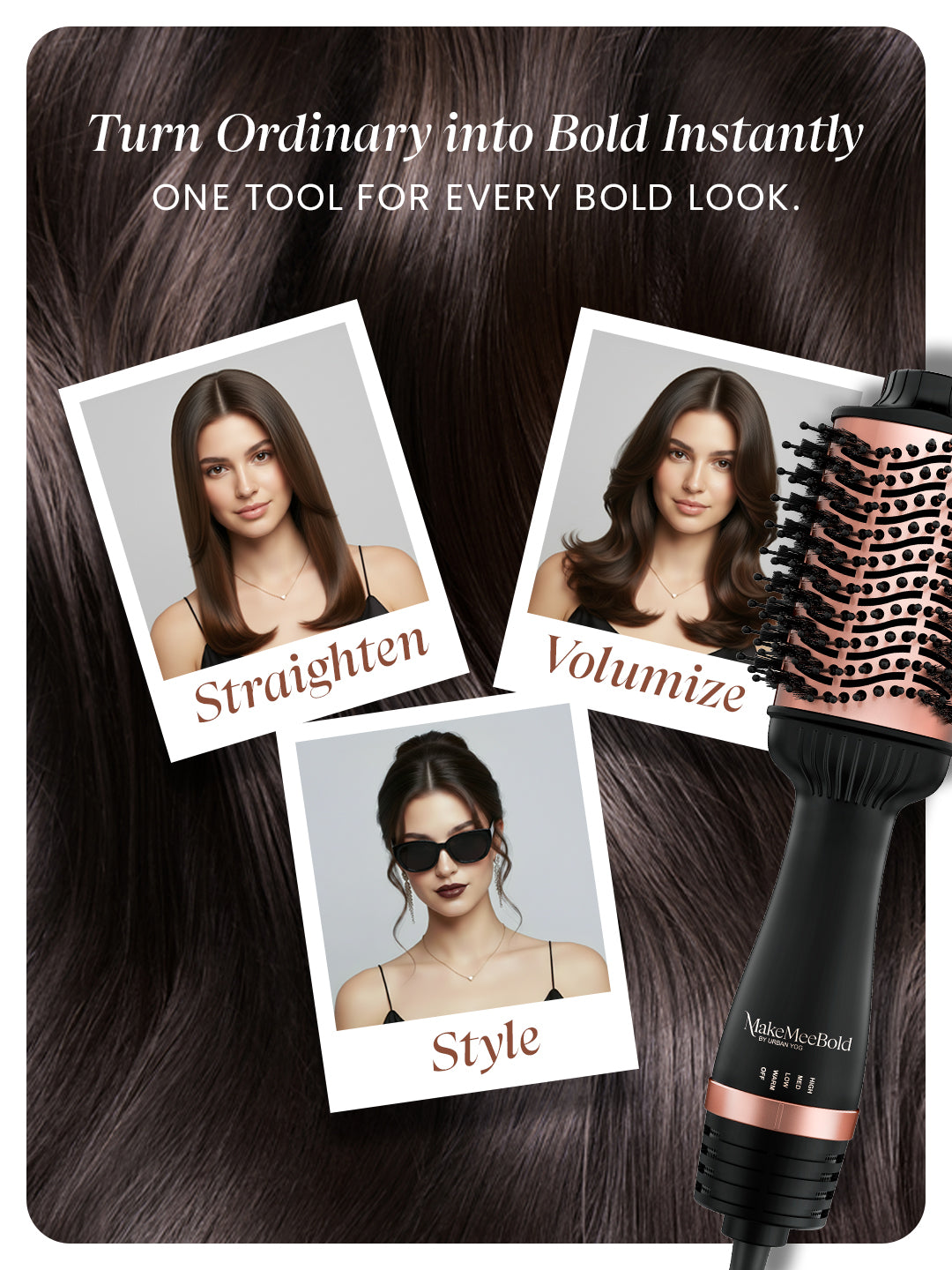 Whether you’re prepping for work, college, or a night out, the MakeMeeBold Hot Air Brush gives you the power to create stunning styles effortlessly. Boost your hair’s volume, add bouncy waves, or simply go for a sleek, frizz-free look with this hair blower brush. Get the confidence to style like a pro, anytime, anywhere.